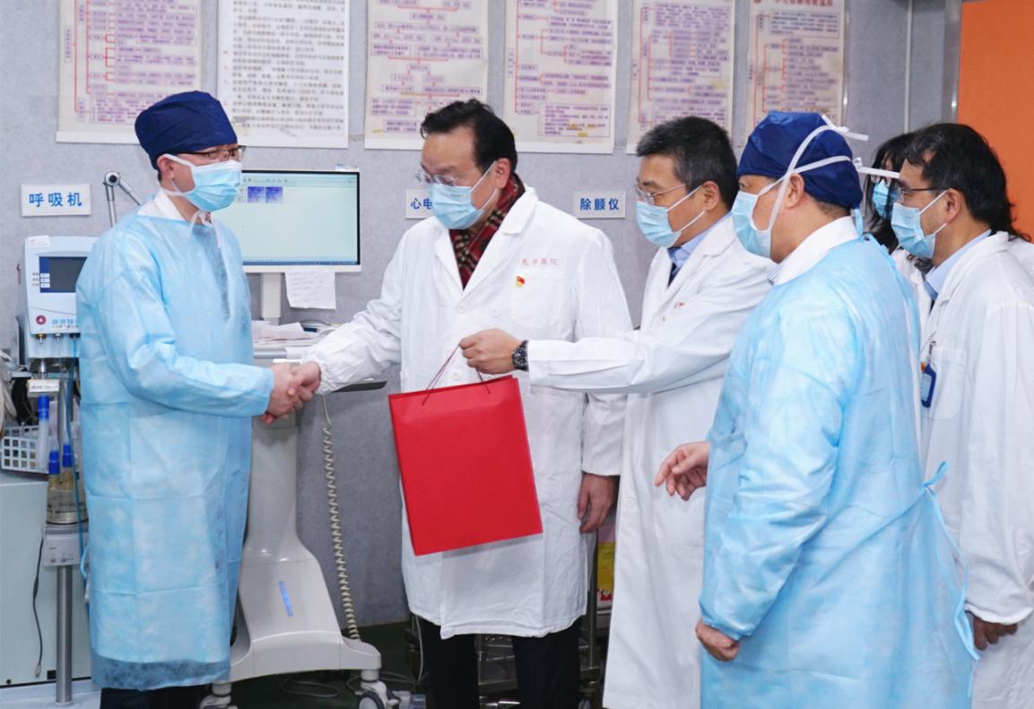 近期正值新型冠状病毒感染的肺炎疫情防控重要时期,校领导们高度评价了医院应对突发事件、保障人民生命健康所作的贡献,以及一线医务工作者的敬业与坚守,要求大家坚决贯彻落实习近平总书记重要指示精神,始终把人民群众生命安全和身体健康放在第一位,制定周密方案,全力做好新型冠状病毒感染的肺炎疫情防控工作。叮嘱人流量较大的门诊科室一定要注意医护人员的自我防护,每名医护人员必须佩带口罩上岗,病房收治的患者也要做好病史查询,做好预防,更好地为人民服务。