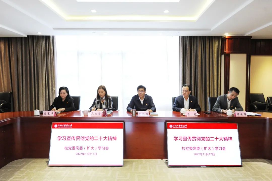 11月17日下午,学校召开校党委常委(扩大)学习会,专题学习党的二十大精神并展开交流研讨。校党委书记曹锡康主持会议并指出党的二十大举旗定向,凝心聚力,为我国未来五年乃至更长时间的发展指明了方向,要以强烈的政治责任感和历史使命感抓好党的二十大精神的学习宣传贯彻,全面兴起学习热潮,切实把报告蕴含的重要思想、重要观点、重大战略、重大举措学深悟透。