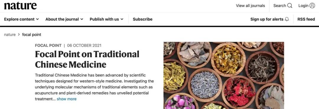 2021年,国际高水平学术期刊《自然》(Nature)主刊于10月7日全球发布《焦点关注中医药》特刊,这是《自然》主刊第一次以焦点关注特刊的形式来关注中医药的发展。