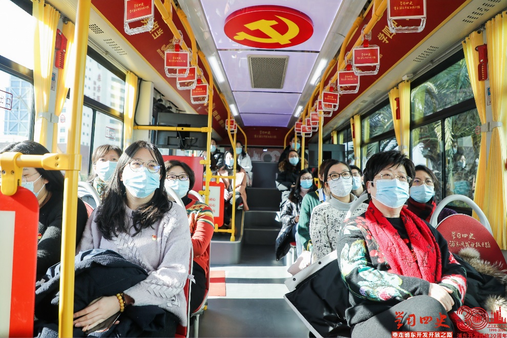 不同于传统固定的“四史”学习教育阵地,红色巴士课堂是一个移动的“四史”学习教育平台,通过边行车、边参观、边讲课、边互动的学习形式,让“四史”学习教育的过程更具代入感。讲解员从“历史选择了浦东”“从一只羊到30多万金融从业人员”“从超级CBD到世界会客厅”“从上交所鸣锣到科创板落地”等九个板块,涉及20余个地标建筑、30多个浦东故事、超100页图文解说、7000字文稿,以扎实的内容、新颖的形式、生动的讲解构造沉浸式的学习体验,实现了车内讲解与车外景观的完美融合,在陆家嘴的天然“四史”课堂中为广大党员上一堂身临其境的“四史”学习教育课。