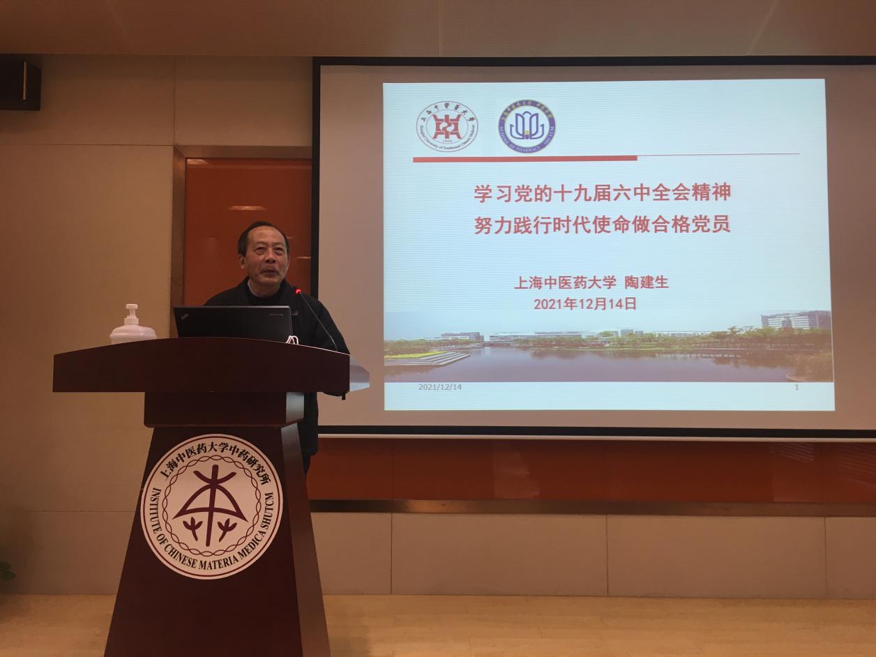 为深入学习贯彻党的十九届六中全会精神,12月14日下午,中药研究所党总支邀请校党史学习指导组第一组组长陶建生教授作题为《学习党的十九届六中全会精神,努力践行时代使命做合格党员》的专题讲座。学习会由中药研究所党总支书记王广东主持,研究所教职工、全体党员、入党积极分子等100多名师生参加学习。
